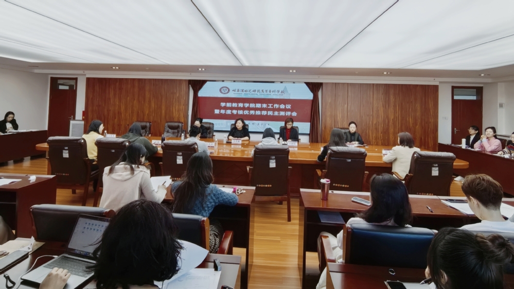 时光荏苒,岁聿云暮。为全面总结2025年工作成效,科学谋划2026年发展蓝图,同时有序推进年度教职工考核评优工作,进一步凝聚共识、鼓舞干劲,2026年1月5日,学前教育学院期末工作会议暨年度考核优秀推荐民主测评会在主楼会议室隆重召开。学院全体教职工参加本次会议。