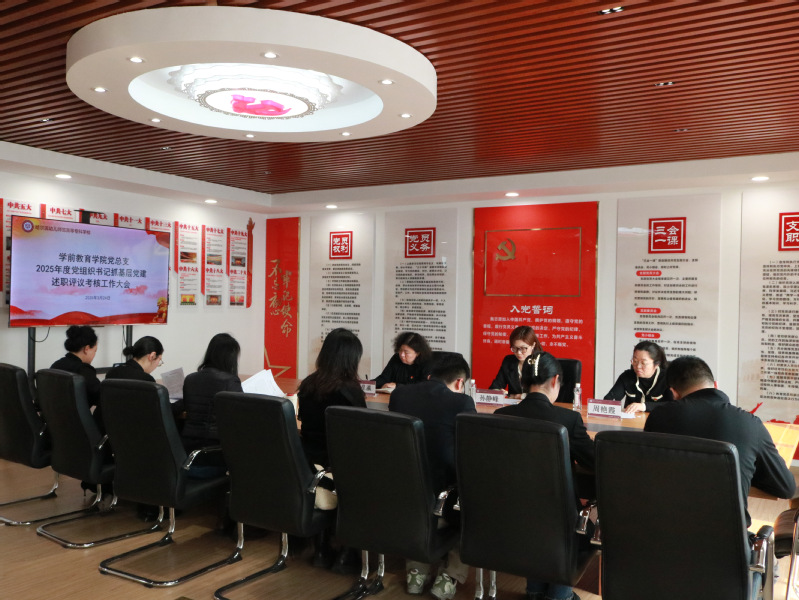 为全面压实基层党建工作责任,提升学院党建工作质量与水平,根据《中共哈尔滨幼儿师范高等专科学校委员会2025 年度党组织书记抓基层党建述职评议考核工作实施方案》要求,3月24日,学前教育学院召开 2025 年度党组织书记抓基层党建述职评议考核会议。学院党总支领导班子张星瀛、孙静峰、周艳霞出席会议,学院各党支部书记、组织员参加会议。