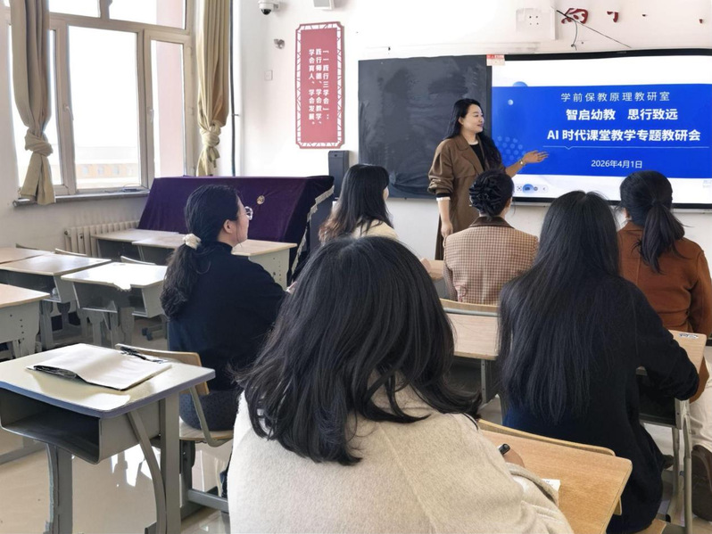 为主动适应人工智能技术发展趋势,探索AI 与学前教育教学深度融合路径,提升教师数字化教学能力与专业素养,近日,学前保教原理教研室以 “智启幼教,思行致远:AI 时代课堂教学的思考与实践” 为主题召开专题教研会议,教研室主任刘磊主持会议,全体教师参会,围绕AI 赋能学前教育课堂教学展开深入研讨。