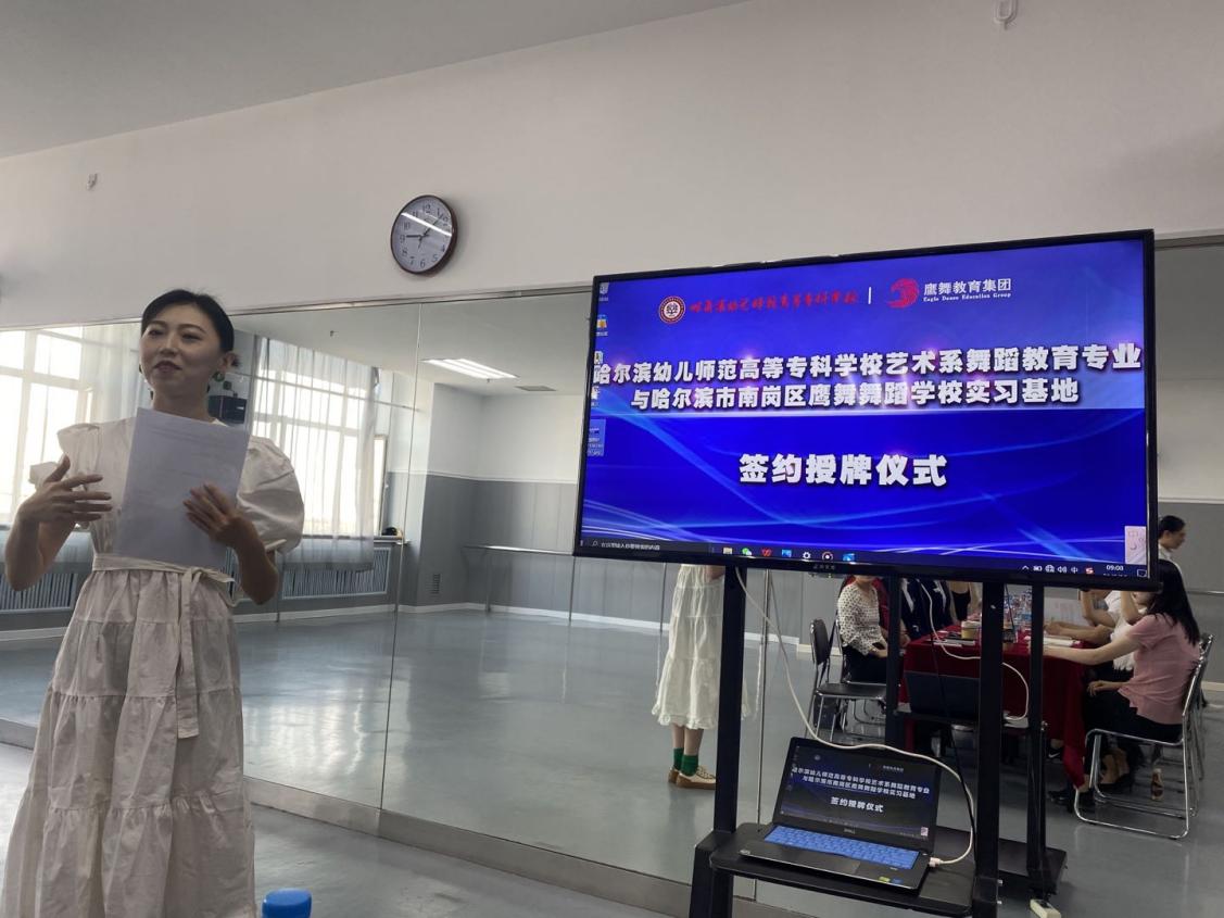 鹰舞舞蹈集团教学副主任韩卓菲主持签约仪式