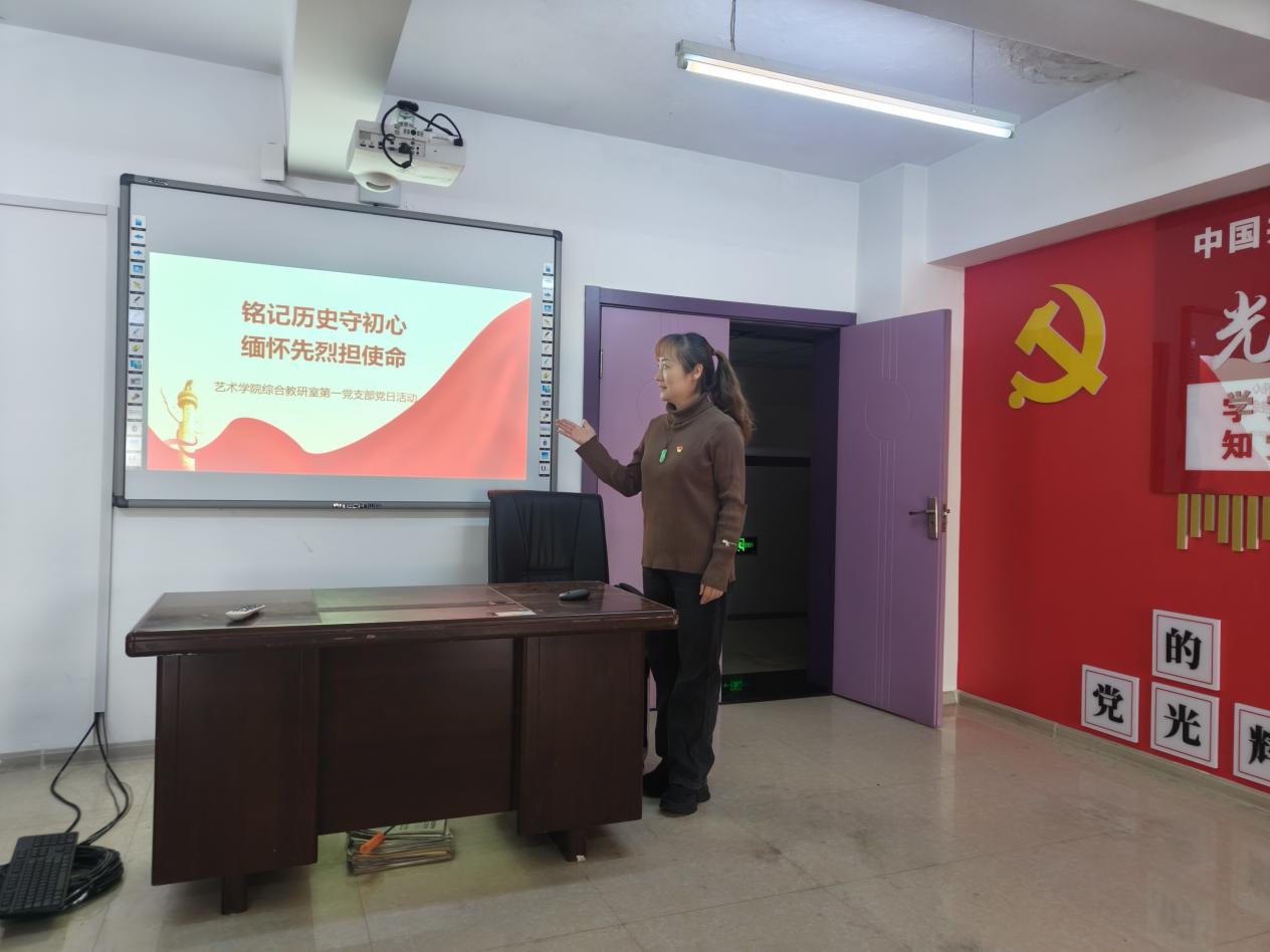为纪念抗日战争胜利80周年,10月24日,艺术学院综合教研室第一党支部组织开展了"铭记历史守初心 缅怀先烈担使命"主题党日活动。通过观看纪录片、分享观影感悟等形式,全体党员教师重温峥嵘岁月,感悟信仰力量,进一步坚定了立德树人的使命担当。