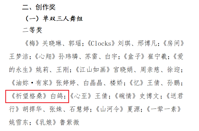 我院舞蹈教育系舞蹈教研室教师白鸽创作的原创藏族独舞《祈望格桑》,由舞蹈教育专业学生姚丽嘉表演参赛。经过严格的作品审查、现场表演与竞分环节,凭借深厚的藏族文化底蕴、精湛的舞蹈技艺和极具感染力的艺术表现,在众多参赛选手中脱颖而出,最终荣获单双三人舞组表演奖二等奖、创作奖二等奖两项殊荣!这一成绩的取得,离不开校党委的高度重视与悉心引领,是校党委坚持正确办学方向、深耕艺术教育领域的重要成果,不仅是对师生创作与表演能力的高度认可,更彰显了我校艺术学院舞蹈教育系在全省舞蹈专业领域的教学实力与创作潜力,为学校赢得了荣誉。
