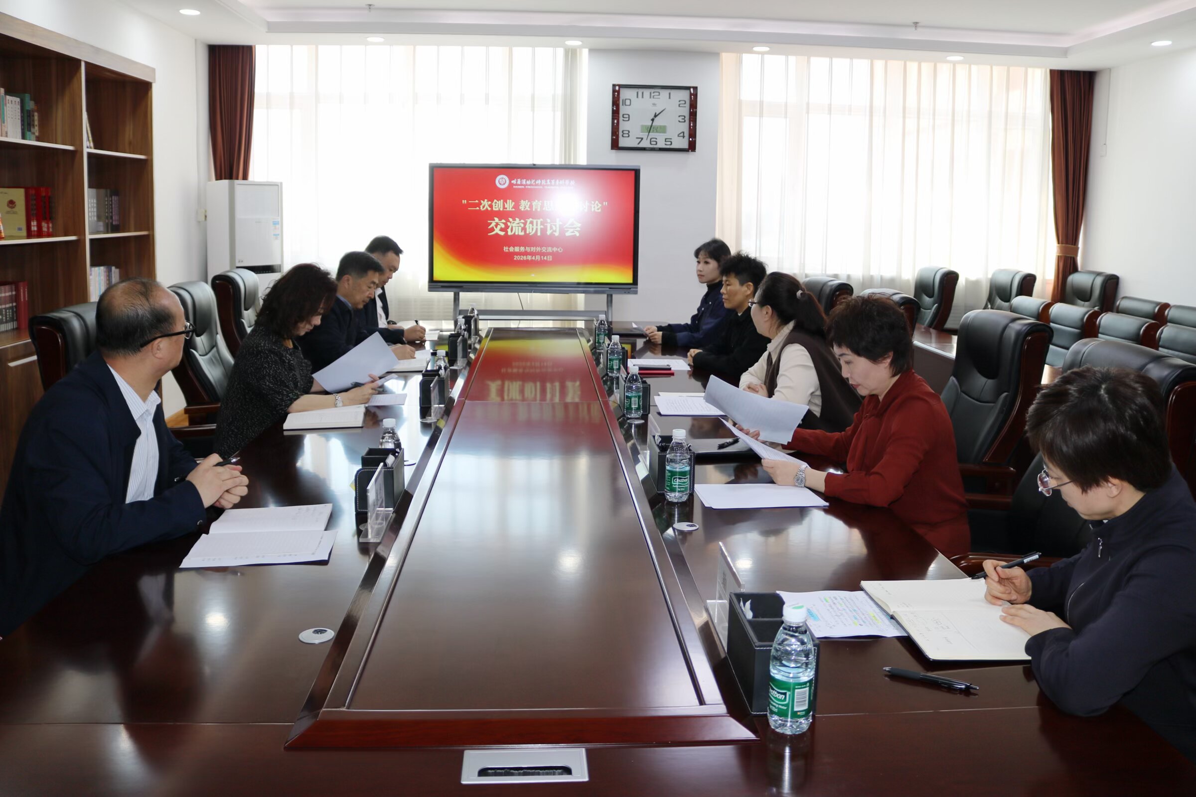 为深入落实学校“二次创业”战略部署,扎实推进教育思想大讨论走深走实,全力服务学校升本攻坚与转型发展,4 月 14 日下午,社会服务与对外交流中心召开“二次创业 教育思想大讨论”专题交流研讨会。学校党委书记陈威、副校长胡宁出席会议,宣传部李春光、党政办周宇列席,会议由中心主任王晓锋主持。
