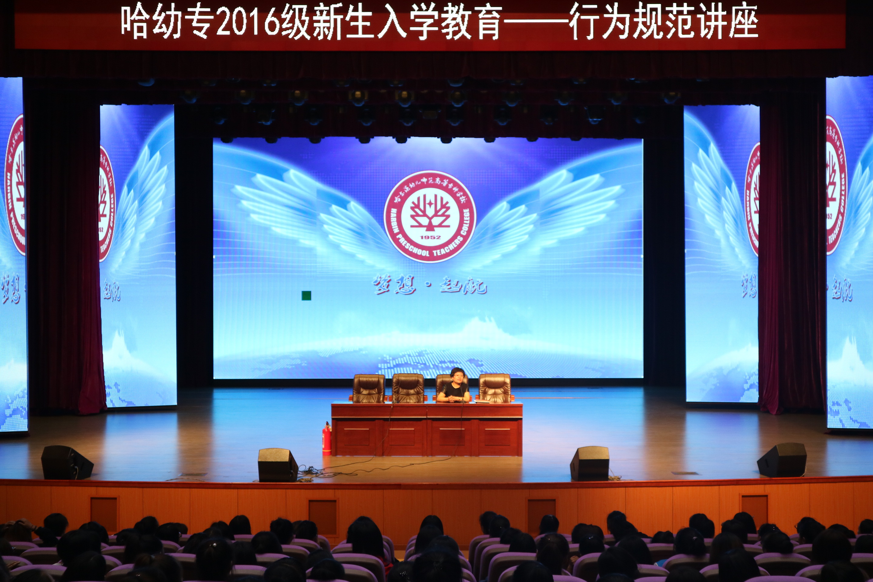 为让2016级新生在哈幼专校园中健康成长,遵规守纪、静心学习、阳光生活、树立远大目标、充实完成大学三年的学习生活,同时顺利完成高中到大学的角色转换和接轨,我校于2016年9月18日开展了第一批入学教育,9月23日开展了第二批入学教育。参加本次入学教育活动的有学生处副处长孙晓达、学生处老师孙静峰、周宇、陈晓雪、16级全体辅导员老师和16级全体新生。