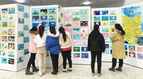 经过近一个多月的准备,2017年12月4日,“第三届电脑画图作品展”正式在教学楼二楼大厅开展。党委书记孙杰、校长陈爱华在丁韵梅副主任的陪同下一起参观了画展,她们认真观看一幅幅作品,对学生的电脑绘图水平给予了充分肯定,并希望学生将这种技能带到今后的幼儿园环境创设中去。