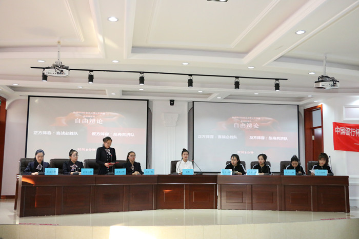 为贯彻落实党的十九大提出的通过文化建设实现文明这一奋斗目标,将社会主义核心价值观融入到学生日常管理的各方面,巩固学生以文明为荣的思想,提高学生的语言组织能力、表达能力以及逻辑思维等多方面的能力,学生处于12月1日下午在图书馆报告厅举办了“弘扬践行社会主义核心价值观——同庆党的十九大,共树文明新风尚”主题辩论赛决赛。出席本次活动的有赞助商代表:中国银行哈尔滨开发区支行副行长刘宇,香坊广场支行白士力主任,个人金融部范丽娜主任;以及学生处处长周杰,学生处老师孙静峰,学生处党支部成员和积极分子、全体辅导员及学生代表。