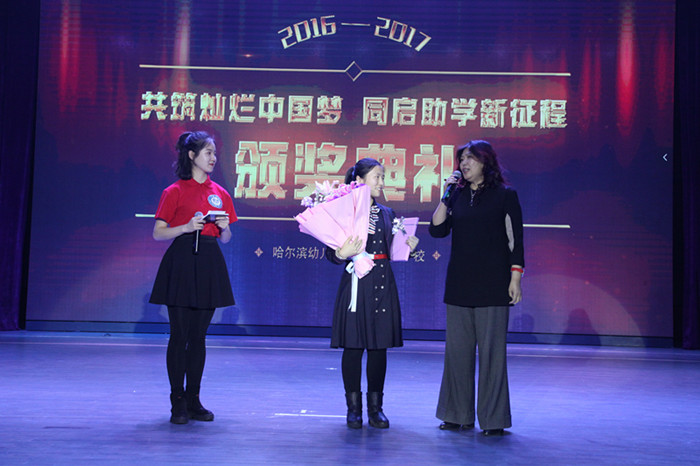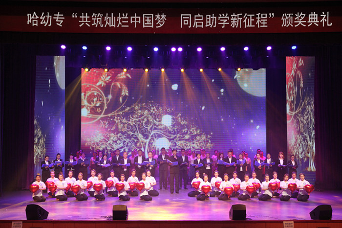 颁奖典礼上,师生还结合国家资助表演了诗朗诵《同学我想对你说》、舞蹈《时间都去哪了》、歌伴舞《我爱你中国》及诗朗诵《感恩无价-----关注寒门学子成长》等节目。