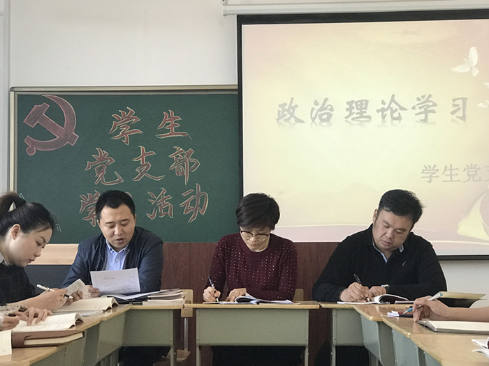 理论学习环节,学生支部组织委员周宇、宣传委员范雪阳、支部第一党小组组长郑琳琳分别就习近平新时代中国特色社会主义思想,党的十九大精神中八个明确、十四个坚持等内容带领支部成员进行了学习。