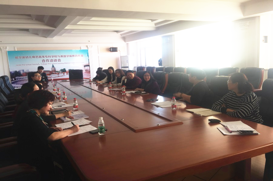 2018年3月19日下午,在哈尔滨幼儿师范高等专科学校科研处的大力支持和牵线联系下,哈尔滨市幼儿师范附属幼儿园程云园长带领梁健、李书月主任以及该园科研骨干教师来到我校,就吕妍老师黑龙江省规划办“十三五”规划课题“通识教育背景下师范院校社会主义核心价值观教育与美育结合的有效途径研究”开展校园合作进行研讨。哈幼专科研处肖向夷副处长、基础教育部杨薇副主任、思政教学部左英霞主任、张晶老师,科研处刘磊、郭庚健老师,以及课题组成员邢琳、杨妍参会研讨。