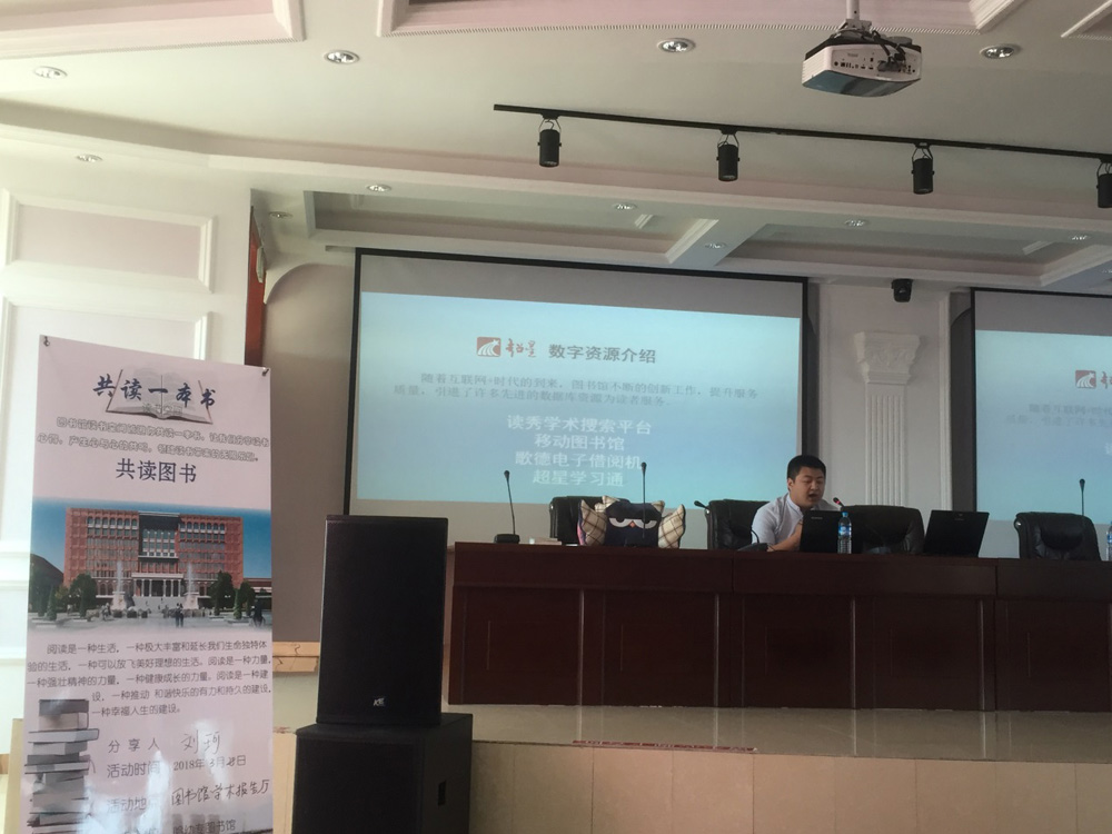 “共读一本书”的共读书目,为图书馆的馆藏纸质图书与歌德机的电子图书所共有的图书。为了充分利用馆内的电子资源,在今天的启动仪式上,图书馆请来了超星集团的王思宇老师,为同学们讲解了歌德机、超星移动图书馆、读秀及云舟的使用。
