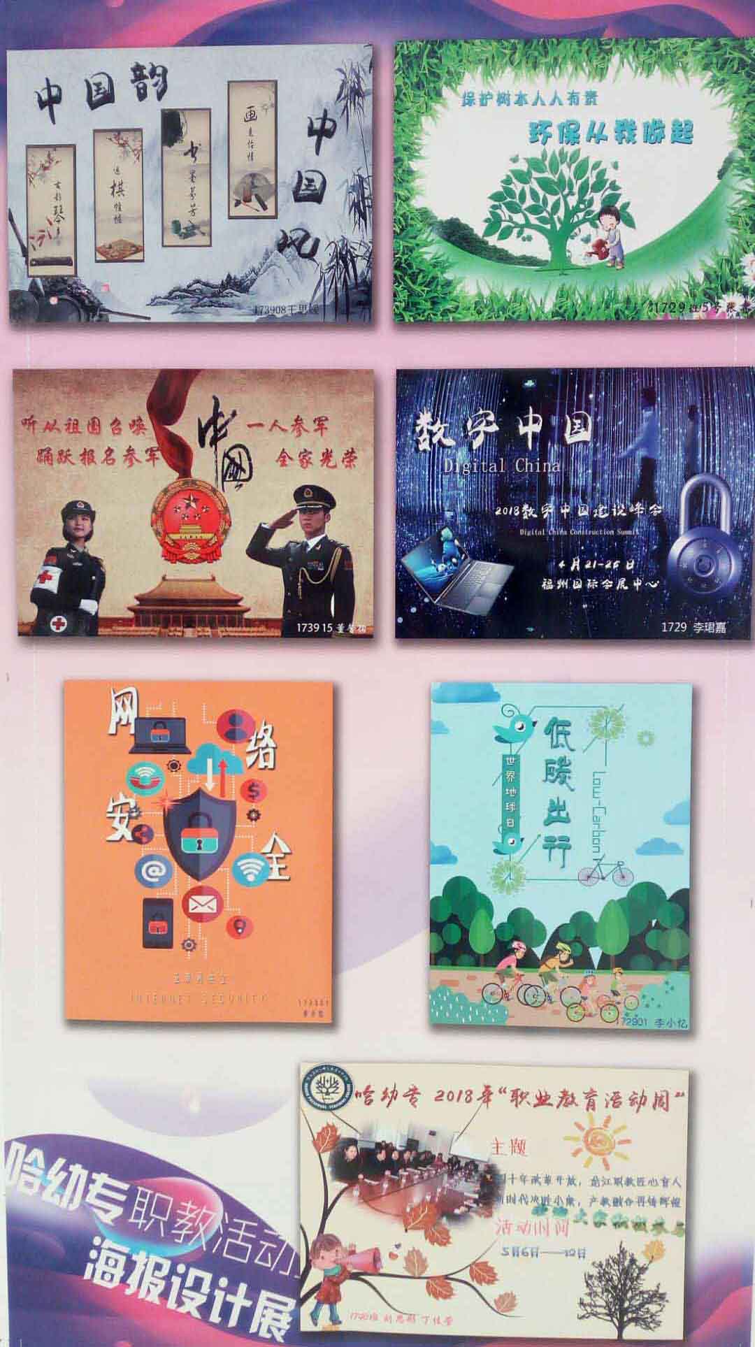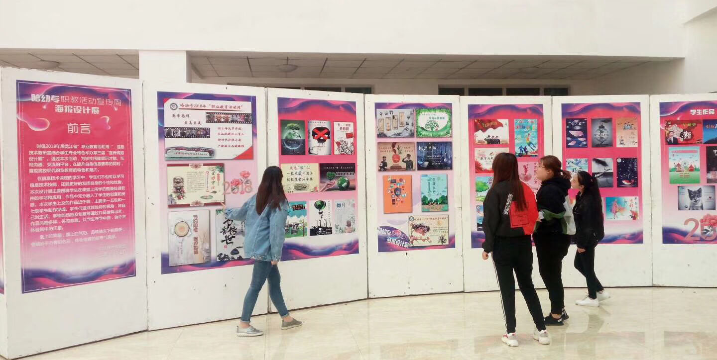 时值2018年黑龙江省“职业教育活动周”之际,信息技术教研室结合学生专业特色举办第三届“宣传海报设计展”,于2018年4月27日在主楼大厅完成布展,即将正式拉开帷幕!