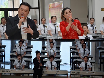 音乐教育系接到即将参加2018黑龙江省职业教育活动周的通知后,系里所有老师都在积极的进行筹划,大家分工明确,加班加点的给同学们进行排练,学生们也都积极地练习。启动仪式上,音乐教育系艺术团的师生还进行了技能展演,近200名师生联袂演出,展示了声乐演唱、钢琴、电子琴弹唱、古筝、扬琴等丰富多彩的专业技能,学校女子铜管乐队还现场进行了行进间吹奏表演,充分展现了哈尔滨幼儿师范高等专科学校学生良好的职业技能,展现了学生师生的靓丽风采,受到领导一致好评。