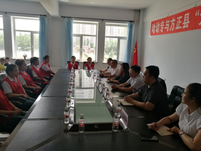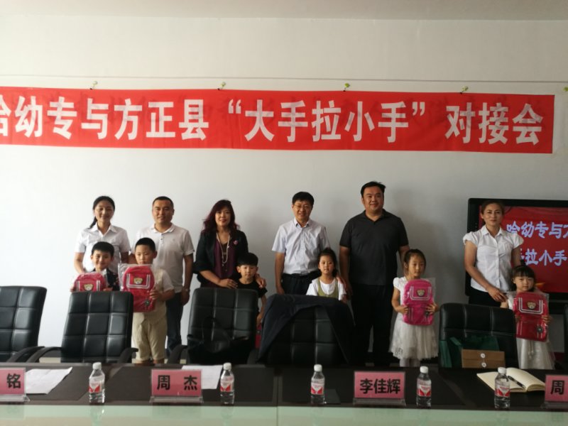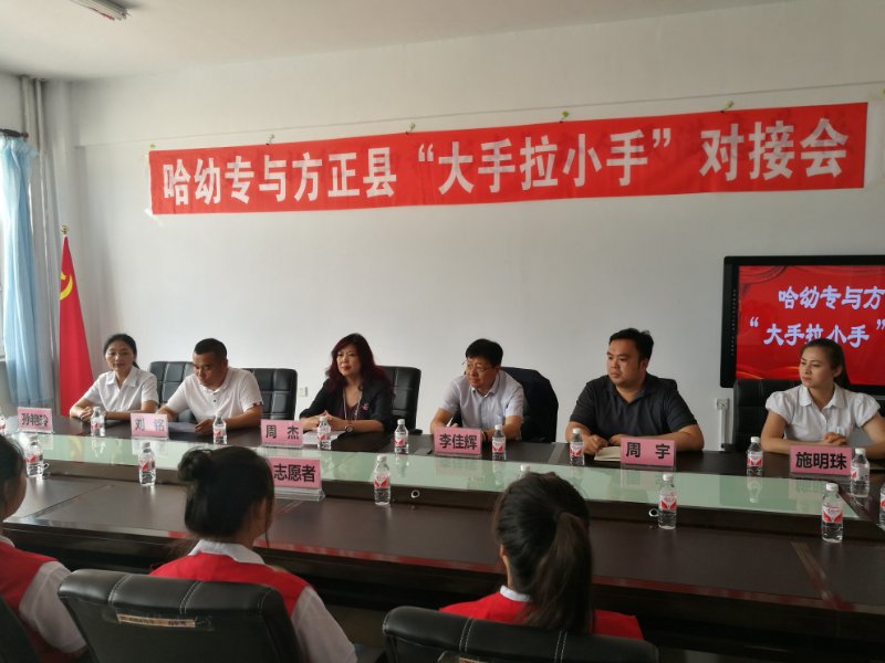 6月20日,我校学生工作主管领导周杰、团委周宇老师带领10名志愿者来到方正县与其举行“大手拉小手”关爱留守儿童志愿服务站启动仪式。方正县教育局局长李佳辉、副局长刘铭、方正县幼儿园园长施明珠出席本次对接活动。
