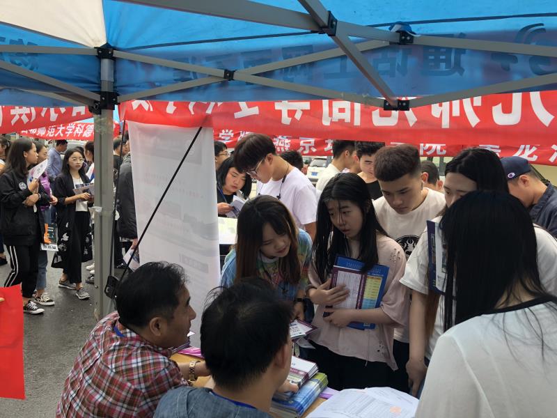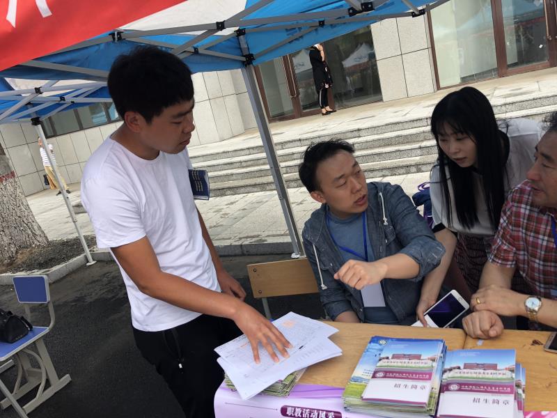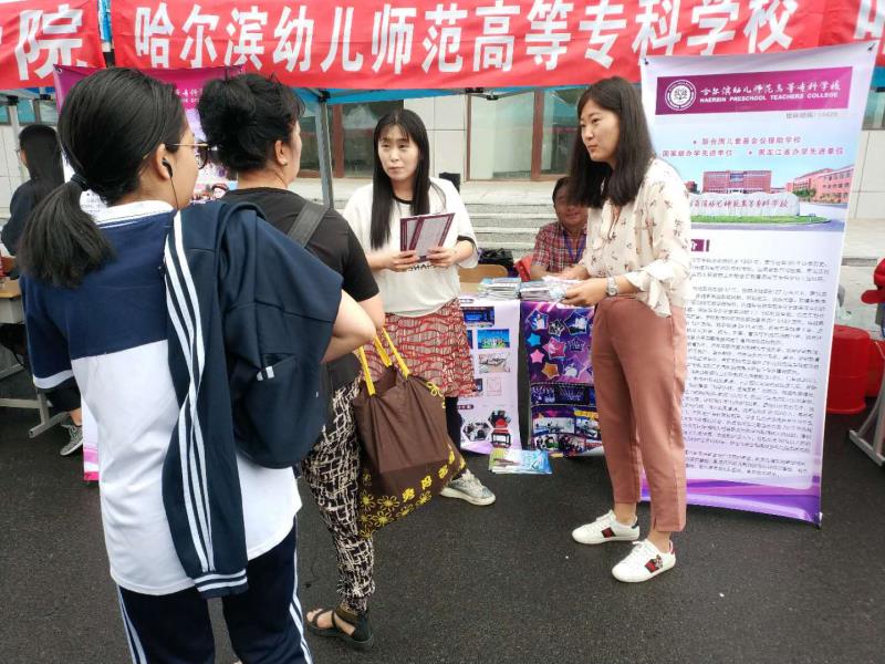 2018年6月25日,音乐教育系邱岳、张一璕、全代扬、宋瑞雪四位老师赴2018年黑龙江省高考艺术咨询会哈师大招生点进行现场招生咨询,虽然天气情况不理想,但是考生及考生家长的积极性非常高,整场招生会四位老师就考生及家长对分数线及升本等情况进行了详细的解答。