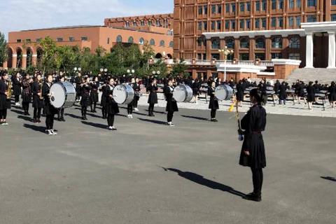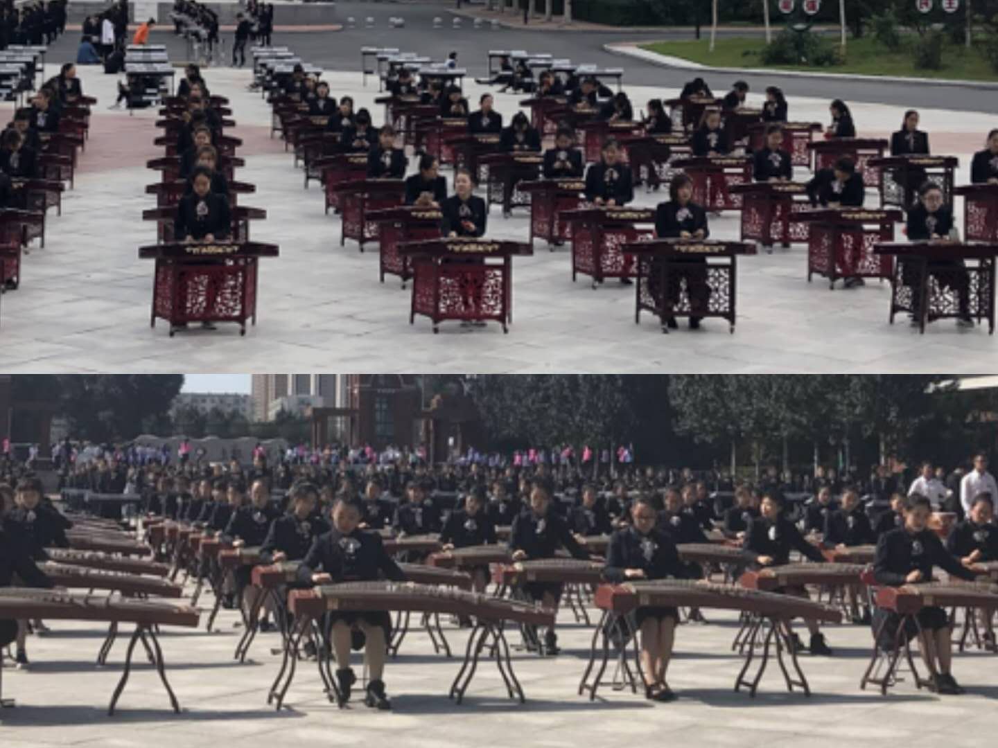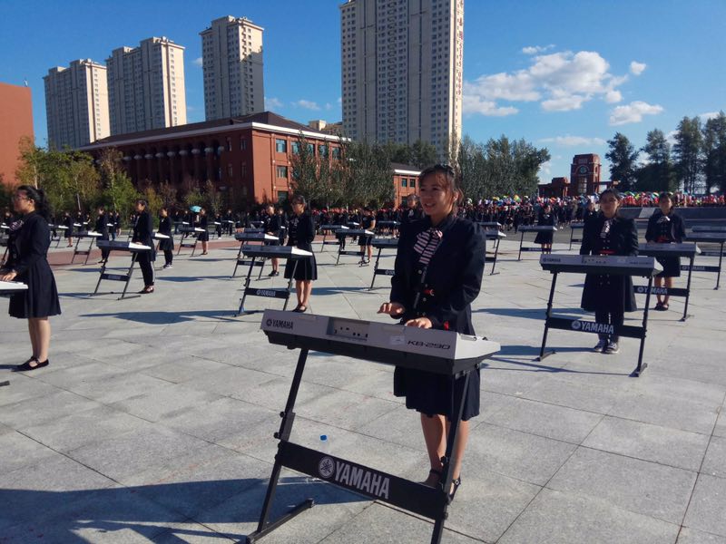 广场文艺演出中,音乐教育系教师张念清、迟尚奇、赵姗娜、刘迪指导的女子管鼓乐团演奏的《勇往直前》;张彤彤、赵宇指导的电子琴弹唱《蜗牛与黄鹂鸟》等;周博、章晔、王博指导的古筝、扬琴协奏《盛世国乐之开元盛世》以其恢弘的气势、整齐划一的弹唱配合和高超的演奏技艺展现了音乐教育系各音乐实践活动组学生多年来的优秀学习成果以及音乐教育系多年来的教育改革发展成果。