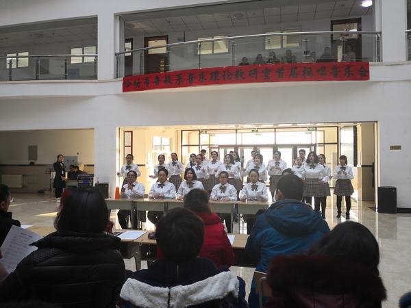 11月30日下午14:00,音教系音乐理论教研室首届视唱教学汇报音乐会在主楼二楼大厅成功举行,音乐教育系主管领导周杰、系副主任秦岭、音乐理论教研室主任詹平、声乐教研室主任邱岳、音乐实践教研室主任张念清及系全体教师观看了演出。