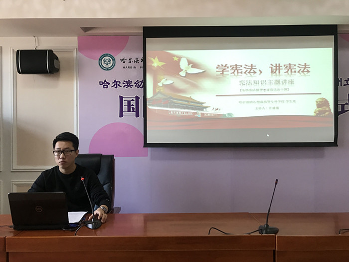 辅导员许盛循在会上作了“学宪法,讲宪法”主题讲座,要求全体学生工作系统首先要在深入学习的基础上,面向学生做好学习宪法的宣教活动,在“学习宪法,依法治校,依法管理”系列活动中,要坚持中国共产党对一切工作的领导地位,强化对学生的思想政治教育与引领;坚持全心全意为全校师生服务,确保学生成人成才;不断完善学生管理制度、体系建设,保障学生管理有法可依,有章可循;坚定维护学校安全稳定,建设安全和谐校园。