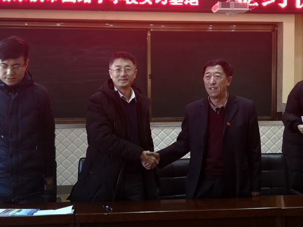 音乐教育系副主任秦岭与团结小学校校长陈志昌握手