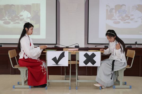 讲座上,主持人携手礼仪队员为大家讲解并示范展示了平辈礼、长者礼、师者礼等基本礼仪与国学礼仪之餐桌礼仪,同学们以游戏方式深入学习,气氛十分活跃。通过本次讲座提高学生对礼数的认知与了解,坚定文化自信,推动中华优秀传统文化创造性、创新性发展,为深入推进校园文化建设,引导青年大学生知礼、懂礼,注重传统文化中的礼节,让幼专学子在学习中展现青春光芒、逐步成长,提高自身素质。