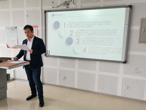 会上,课题主持人胡元峰老师做课题的开题报告,报告中阐述了这次课题研究的背景及重要意义,并从课题研究的理论价值、预期目标、课题研究的内容和步骤等进行详细的讲解与介绍。科研处副处长肖向夷宣读了《黑龙江省教育科学规划办“十三五”重点课题任务下达书》并对课题的立项、前期的研究工作给予了肯定,从课题的核心概念界定、研究方向及具体实施提出针对性及操作性强的意见和建议。科研处教师宋丽博、刘磊也对课题提出了其他具体指导性的建议。