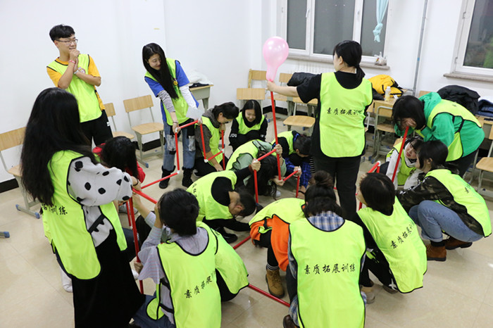 为发掘和提升学生突破思维定势、建立和谐团队、完善个人品格等能力,帮助学生树立正确的世界观、人生观、价值观。学生处素质拓展训练小组那春峰、王会、贾振发、郑琳琳、王逊五位老师利用课余时间,对我校学生干部累计开展素质拓展训练20次,培训人员覆盖校团委、校学生会及各班级主要学生干部,累计500余人次。