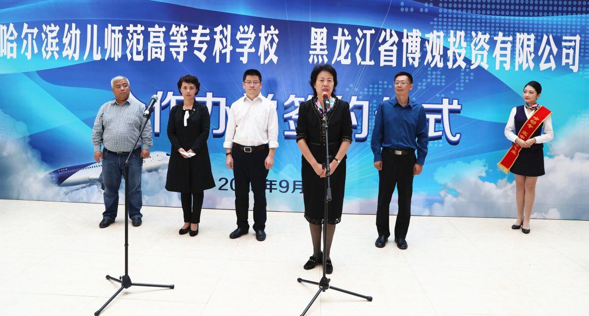 9月11日下午,我校举行与黑龙江博观投资有限公司校企合作办学签约仪式。校党委副书记、校长陈爱华,黑龙江博观投资有限公司董事长宋学明、总经理李文、主管招生院长张文胜出席签约仪式。仪式由副校长于立新主持。