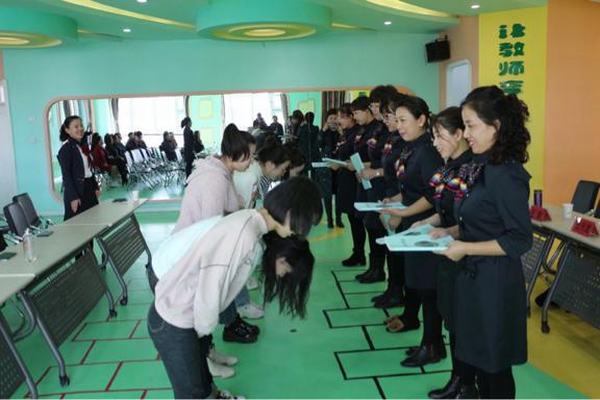 仪式上,木兰县中心示范幼儿园金晓晶致辞,代表幼儿园教师热烈欢迎我校支教学生的到来。并对幼儿园的办园特色、基本情况、规章制度等内容作了详细介绍,要求实习生要珍惜实习机会,多看、多想、多做,认真做好实习记录,努力提高自身的教育教学技能,丰富实践经验,为今后走上工作岗位奠定坚实基础。
