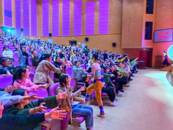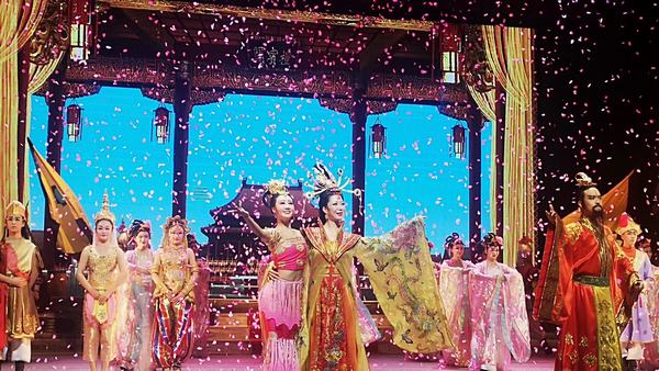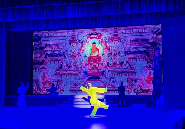 演出现场,从富有浓郁敦煌特色的《金光千佛》序幕开始,到漫天花雨纷飞的剧终,为现场师生们呈现了敦煌文化的博大精深和古丝绸之路繁荣昌盛的大美景象。整场演出以多种舞蹈形式演绎了不同的故事情节,演员们高超的技艺、精美的民族服饰、美轮美奂的舞台效果给观众们带来了强烈的震撼,现场不断响起雷鸣般热烈的掌声。