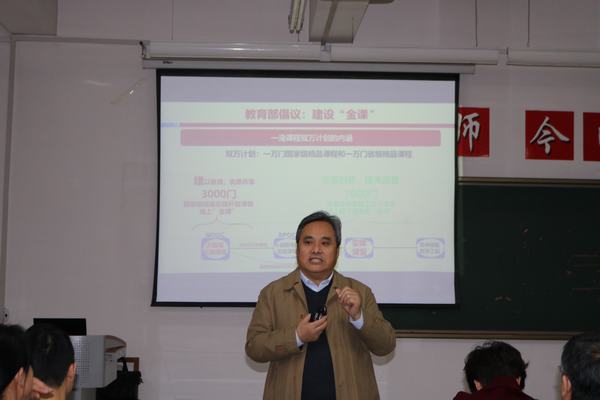 在此次培训中,战教授结合他本人在“MOOC+SPOCs+翻转课堂”教学改革方面的实践成果,系统介绍了为什么要建设慕课/金课;如何打造线上金课—国家精品在线开放课程及其评价标准;如何打造线上线下金课--运用慕课推动实体课堂教学革命。同时,战教授还系统解析了一流课程双万计划的精神和实质。