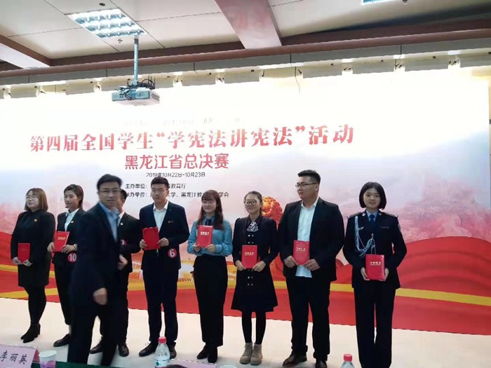 10月22日、23日,由黑龙江省教育厅主办的“学宪法讲宪法”演讲比赛决赛和学生法治知识竞赛决赛在黑龙江大学举行,我校学生宋雨欣、刘青悦分别获得演讲比赛二等奖和法治知识竞赛三等奖。