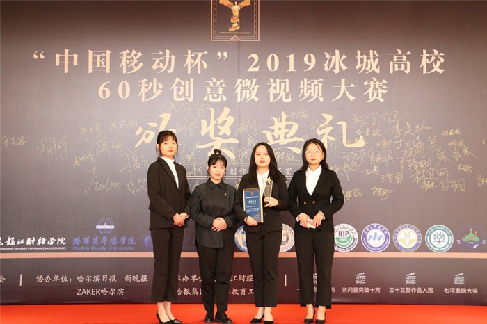 12月4日,由共青团哈尔滨市委员会、哈尔滨日报报业集团主办,哈报集团融媒体教育工作室、ZAKER哈尔滨承办“中国移动杯”2019冰城高校60秒创意微视频大赛颁奖典礼在黑龙江财经学院音乐厅举行。经过组委会层层评选,我校由齐思明老师指导的《我爱你,中国》以及周津羽老师指导的作品《正青春 正能量》微视频,在千个微视频作品中脱颖而出成功入围。获得最佳优秀影片奖。