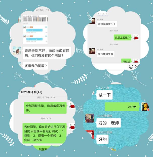 线上授课中英语教育专业的同学们也表现出色,课堂上不仅接连提问,彼此之间还互助解答,这种特殊的学习环境让那些平时略有些腼腆的同学也能主动大胆地提问,发表自己的见解,微信群里的交流氛围热烈,教师的打字速度已经跟不上同学们的提问,即使是语音回复也有些应接不暇,每一节课不仅顺利完成教学任务,而且师生们都感到意犹未尽。