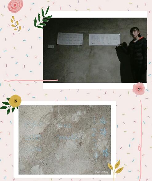 18级英语教育专业的赵爽同学,家住黑龙江省肇东市向阳乡日新村。在小学英语教学法课程学习中,由于家里住房条件有限,她为了完成模拟教学的实训任务,选择在没有供暖、照明不足但环境安静、信号稳定的仓库里练习试讲、录制视频作业,用仅有的两支粉笔在墙壁上练习板书,为了能顺利地写出字迹,她还要反复擦洗水泥墙面。虽然条件不便,但是为了更好地备战小学教师资格证面试,她仍然充满信心,学习热情十足。