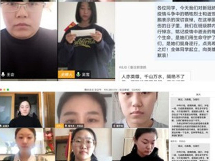 4月4日上午,我校全体学生工作者与全校学子开展了线上悼念活动。本次线上哀悼活动充分利用钉钉班会、腾讯会议、微信群、QQ群等平台开展,10时整,防空警报响起时,师生共同默哀3分钟,深切缅怀牺牲烈士,哀悼逝世同胞。默哀结束后,学子纷纷通过自己的方式表达哀思。