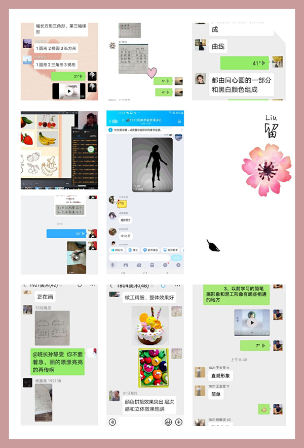 组内所有教师认真备课,落实教学计划,并将准备教学相关信息课件及备课教案提前发送到教研室主任处检查把关,线上教学顺利开展,平稳过渡。艺术专业课教学更有其特殊性,美术教研室组织老师们积极探索利用网络平台进行线上教学。教师们绞尽脑汁、各显神通,力争每个学生都能掌握教学重点和难点,精心设计教学环节,保证教学质量。
