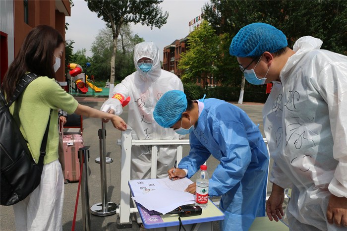 学生经扫描“龙江健康码”、“校园健康动态码”、入校测温、登记等环节入校,并在学校的组织下开展核酸检测。之后便按照“一人一寝”的要求自我隔离,等待核酸检测结果。