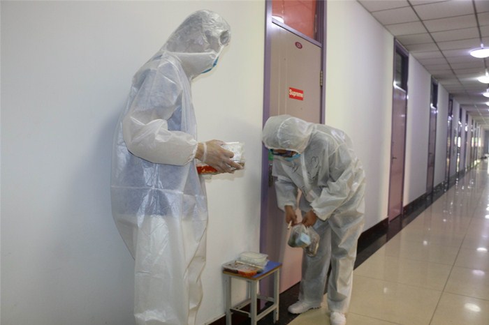 核酸检测结果出来之前,学校安排辅导员为学生配送餐食,并为学生准备了含入校指南、口罩、免洗洗手液的“爱心包”。