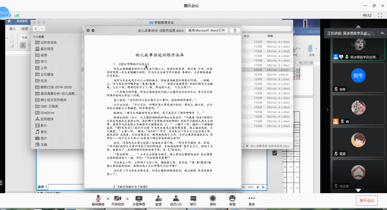 8月24日晚,为了更好地完成我校学前专业人才培养目标,优化课程结构,发挥多学科课程协同支撑学生核心能力的作用,幼儿教育系与基础教育系的部分相关学科教师利用腾讯会议开展线上合作教研活动,这是我们两个系加强内涵建设,落实双论证、师范二级认证、高水平骨干专业建设等工作的重要举措。幼儿教育系主任肖向夷主持会议,参加会议的有幼儿教育系语言教法、学前教育学、学前心理学和科研方法的任课教师,基础教育系的刘珂主任、万鸣主任以及负责教师口语的吴冰老师、儿童文学的曹蕊老师和大学语文的王雷老师。