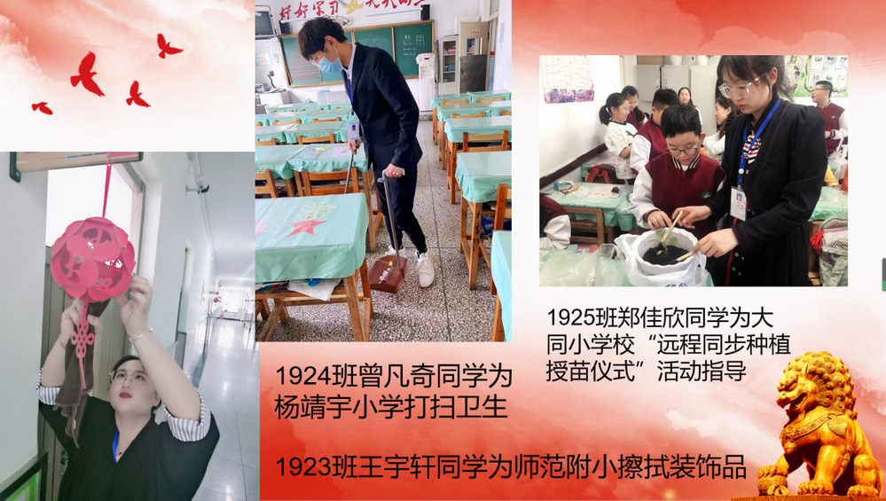 英语教育专业2019级学生以实习为契机,开展了“我为实习学校做好事”活动,旨在贯彻落实全国职业教育大会精神、培养学生为人民服务、教书育人、爱岗敬业、无私奉献、助人为乐、心中有他的精神。学生们吃苦耐劳,无私奉献,养成了积极主动、随时随地做好事的习惯,受到了实习单位的一致好评。事小见精神,实习生都表现充分体现了英语教育系落实立德树人的根本任务,塑造职业道德的育人成果。