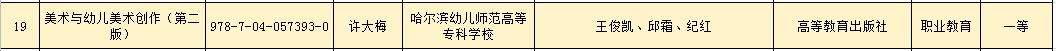 近日,黑龙江省教育厅发布《关于第二届省教材建设奖优秀教材推荐(认定)名单的公示》,拟认定第二届黑龙江省教材建设奖优秀教材(职业教育与继续教育类)86种教材,我校共有四部教材获省级优秀教材奖。其中《美术与幼儿美术创作》获优秀教材一等奖,《幼儿游戏与指导》《学前儿童发展心理学》《婴幼儿心理发展与教育》获优秀教材二等奖。这一成果的取得,标志着我校“三教”改革的进一步深化,教材建设质量提升不断取得新的突破。