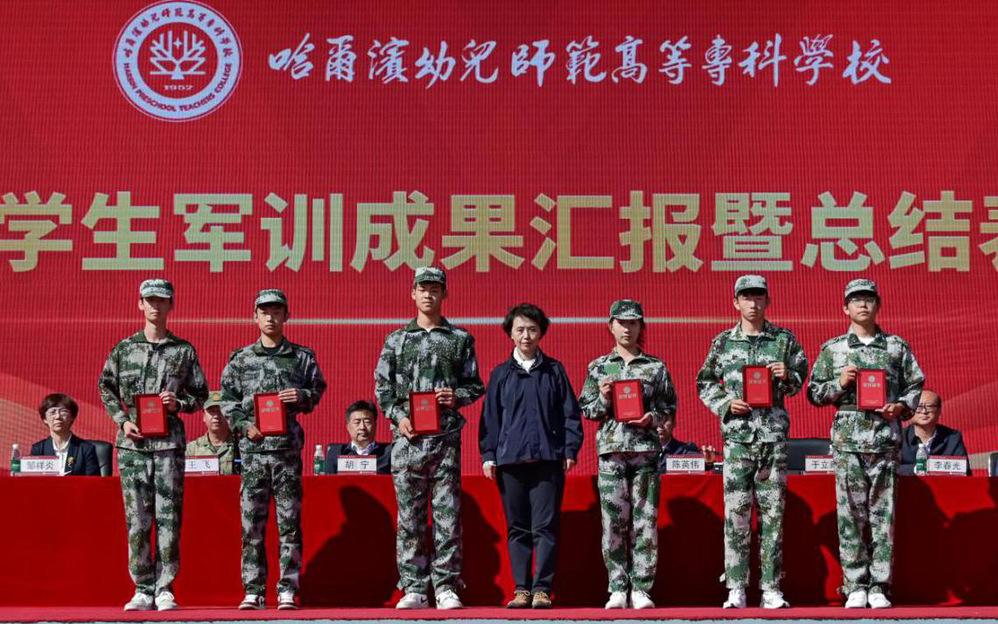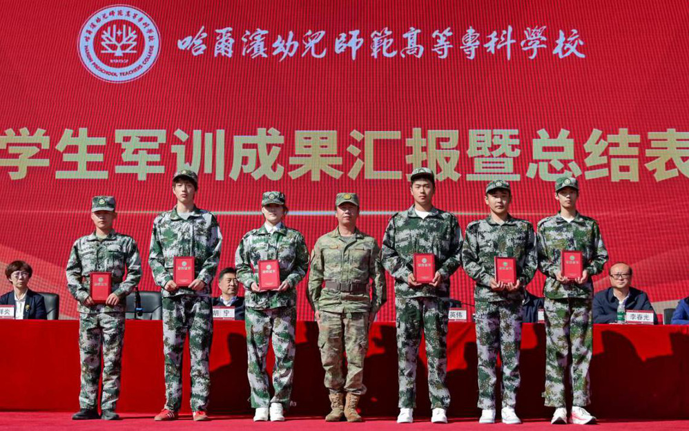 会上,学校党委副书记陈英伟宣读了《哈幼专军训团关于表彰2025级新生军训先进集体和个人的决定》,共表彰了军训优秀模拟营1个、优秀连队5个、优秀教官6名、优秀指导员6名、优秀学兵128名、优秀内务标兵116名。学校党委书记陈威、副书记陈英伟、副校长胡宁、副校长于立新及承训部队领导分别向获得表彰的先进集体和优秀个人颁发了获奖证书。