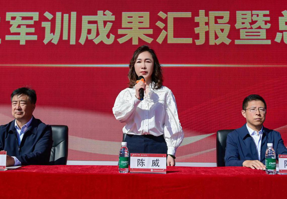 承训部队领导对本次军训做了总结,感谢学校党委对军训工作的高度重视,并寄语全体新生心怀理想、立志报国,珍惜现在、努力学习,不怕困难、不懈奋斗。