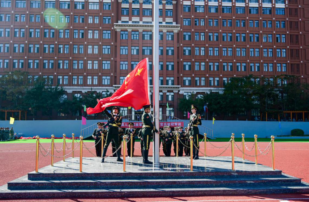 雄壮的《中国人民解放军军歌》响起,全体同学及教官合唱军歌目送军训团团旗离场。