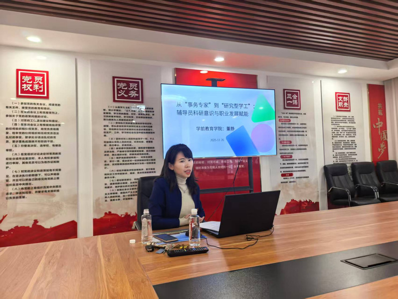 为助力辅导员突破职业发展瓶颈,实现从“事务专家” 到 “研究型学工” 的转型,近日,学前教育学院举办辅导员科研能力提升主题培训。此次培训由学院董静老师主讲,学院党总支副书记、副院长孙静峰及全体辅导员参会,共探科研与育人融合之道。