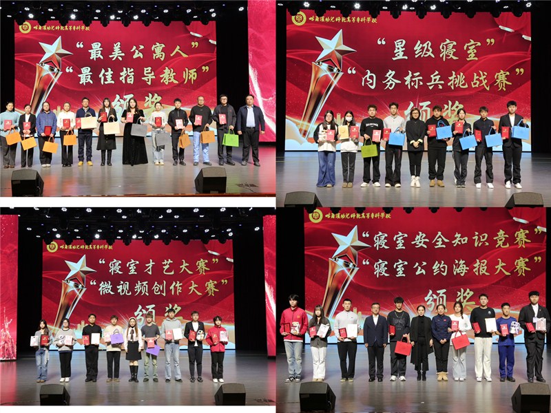 颁奖典礼上,陈英伟,团委、二级学院相关负责人为在寝室管理过程中辛勤付出的各二级学院、辅导员,寝室管理员,以及在寝室文化节期间获奖的学生颁奖。