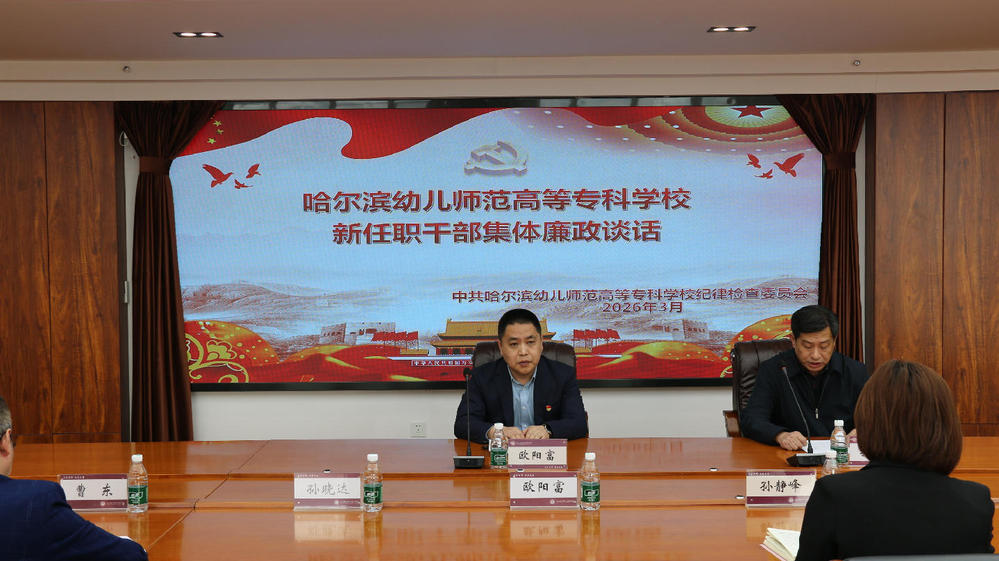 为深入贯彻落实全面从严治党要求,不断加强干部队伍廉洁建设,教育引导新任职干部树立和践行正确政绩观,切实增强纪律意识、规矩意识,持续筑牢拒腐防变的思想堤坝,3月23日下午,按照校党委工作部署,学校纪委组织召开新任职干部集体廉政谈话会议。学校纪委书记、监察专员欧阳富出席会议并作集体廉政谈话,监察专员办公室主任孙晓达主持会议。