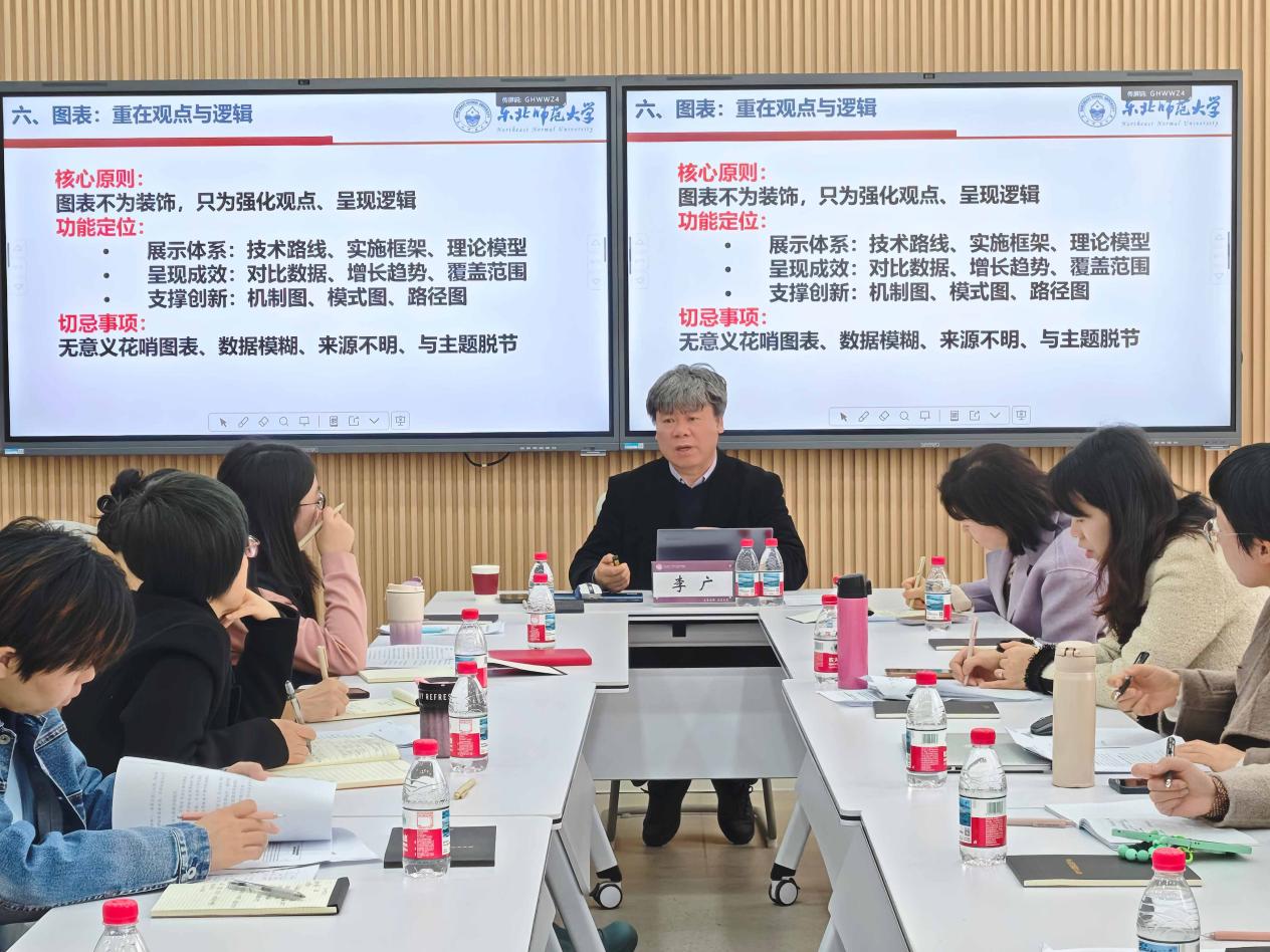 李教授聚焦摘果-逆向设计,正向施工,要全面归集成果;定位-瞄准国家级,突出理论创新与辐射引领;立题-紧扣国家战略,依托已有基础系统立论;框架-三三制、九九式,逻辑闭环与迭代进阶;打磨-反复雕琢,精益求精,小细节决定成败;图表-重在独创观点与内在逻辑,拒绝形式化;要点-概述、问题、创新、成效、推广全覆盖七个方面进行了系统的讲解和一对一的指导,全面解析了申报过程中需要注意的要点,帮助教师厘清申报思路,搭建逻辑框架、梳理作证材料,优化申报文本,切实解决了教师在成果凝练和申报筹备中亟待解决的问题。