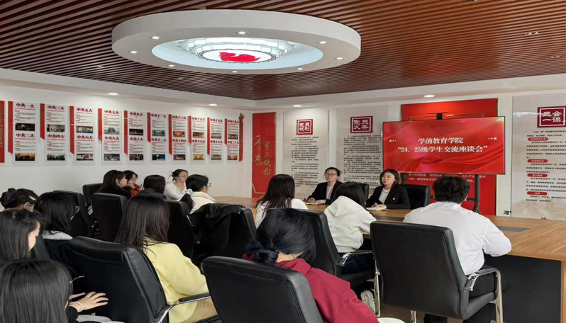 为深入贯彻落实立德树人根本任务,充分发挥学生党支部战斗堡垒作用,精准对接2024级学生成长发展需求,近日,学前教育学院学生第一党支部牵头组织召开新学期师生交流座谈会。学院辅导员刘静、张雪珊及各班级学生代表共聚一堂,围绕学业发展、生活保障、专业建设、职业规划等议题深入交流,以党建引领凝聚育人合力,以师生对话共绘发展蓝图。