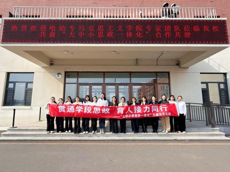 为深入贯彻落实新时代思政课建设改革创新要求,扎实推进大中小学思政教育一体化建设,打破学段壁垒、整合育人资源,4月24日,我校马克思主义学院与哈尔滨市长江路风华学校举行“大中小思政一体化”共建仪式暨教学研讨活动。马克思主义学院院长张晶、长江路风华学校副校长安文华、李慧敏及两校思政课教师代表齐聚一堂,共商思政育人新路径,共筑协同育人新格局。