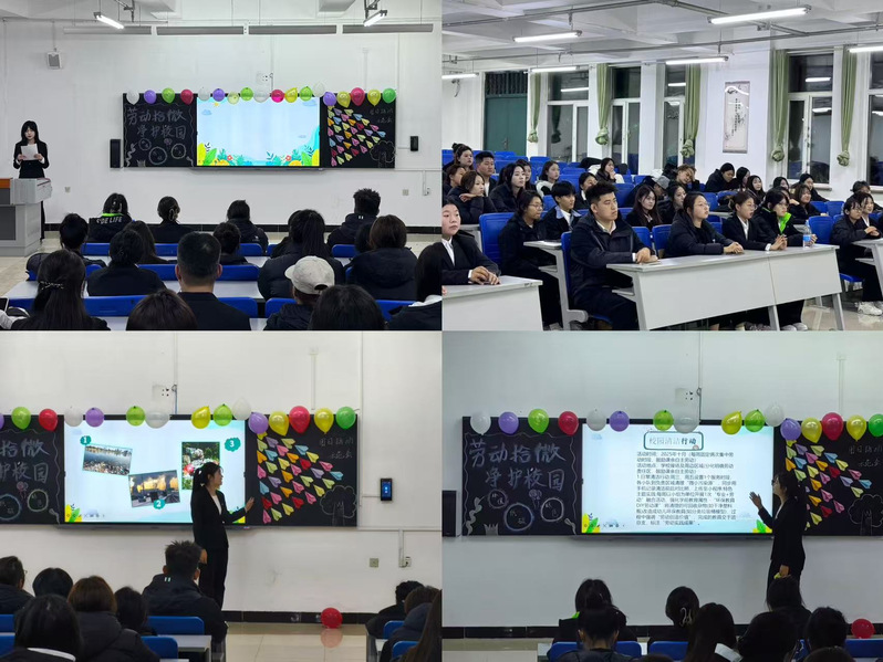 活动前夕,学院团总支组织学院2523班在阶梯教室开展“环保+劳动”主题团日示范会:先以“环保故事分享”开篇,再通过“垃圾分类标准”“校园节能小常识”等主题的知识问答点燃氛围,学生踊跃抢答中深化环保与劳动认知;随后的钢琴演奏注入艺术气息,以悠扬旋律传递“守护绿色家园”愿景,获全场掌声。